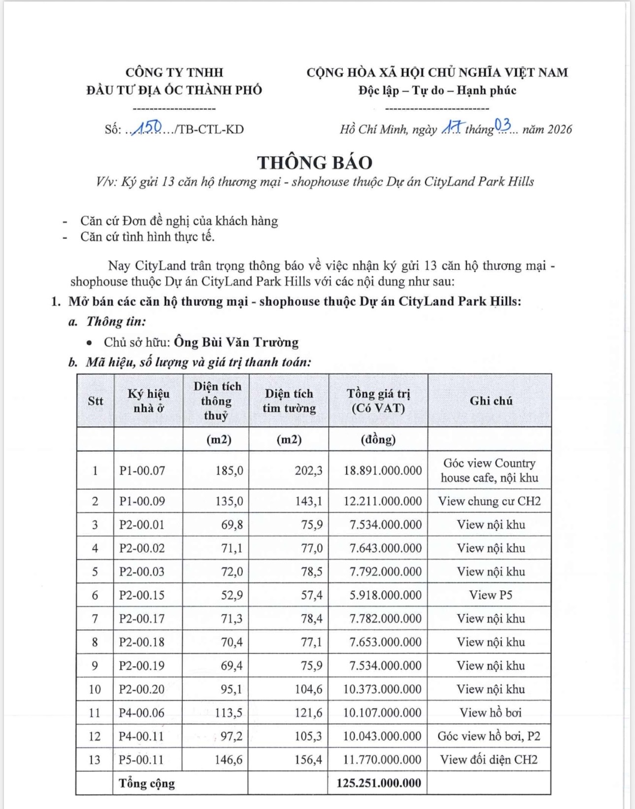 Phòng Kinh doanh CĐT Cityland cập nhật thông tin giỏ hàng 13 căn shophouse căn hộ Cityland Park Hills Gò Vấp với thông tin giá bán và phương thức thanh toán chuyển nhượng như sau: