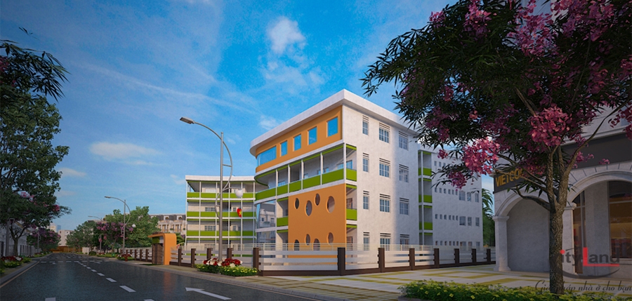 Phối cảnh bên ngoài trường học.