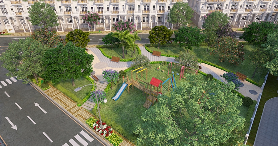 Công viên cây xanh rộng 3438m2 nằm ở trung tâm dự án, kết hợp các mảng xanh được phân bổ bao bọc toàn bộ khu dân cư. Trái tim “xanh” giúp lan tỏa bầu không khí trong lành, tươi mát đến mọi địa điểm trong khu dân cư, đem lại một không gian xanh sạch đẹp và đầy quyến rũ.