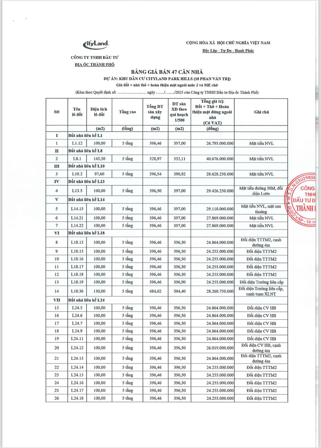 MỞ BÁN 47 CĂN NHÀ PHỐ & BIỆT THỰ CITYLAND PARK HILLS 2025
