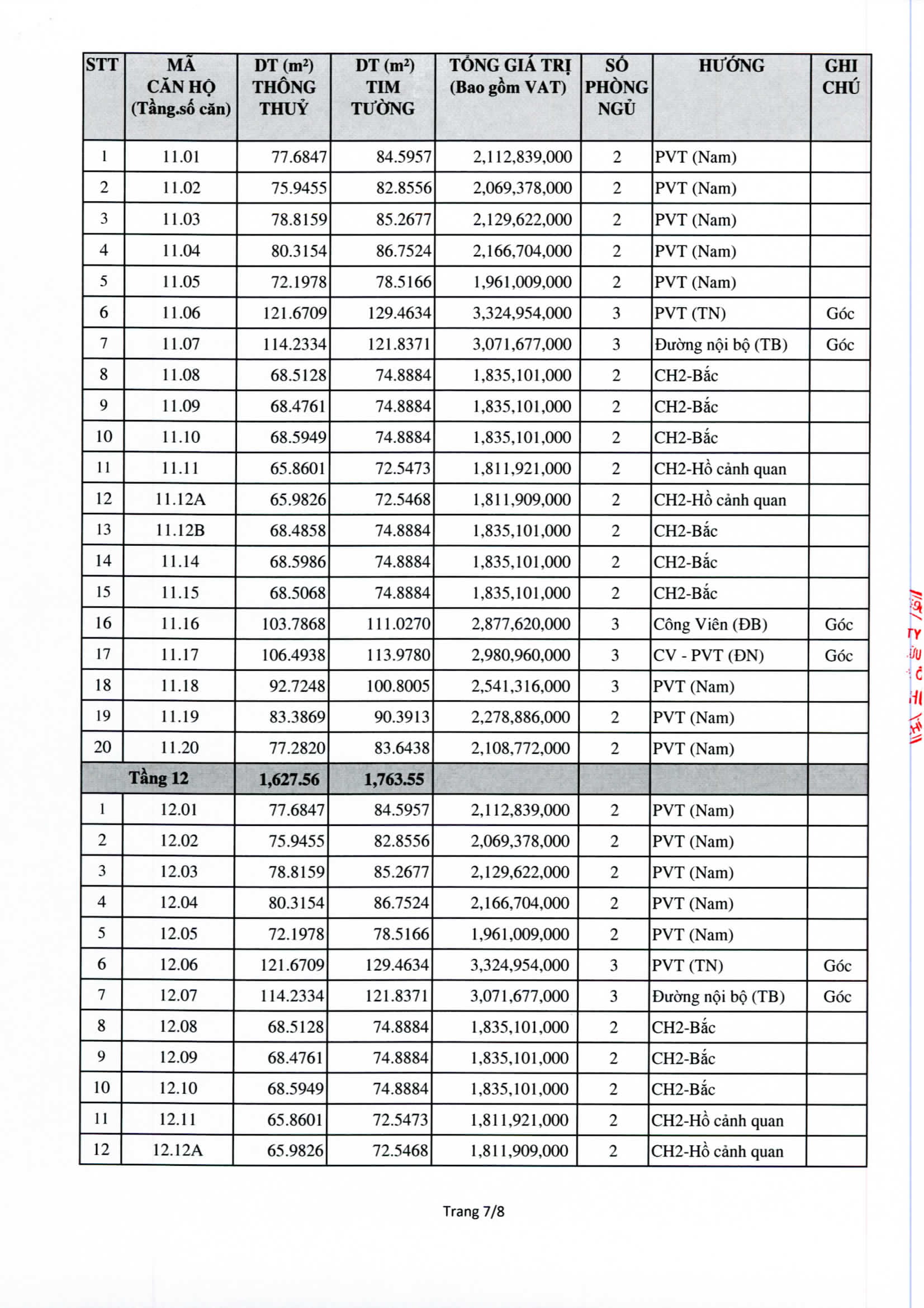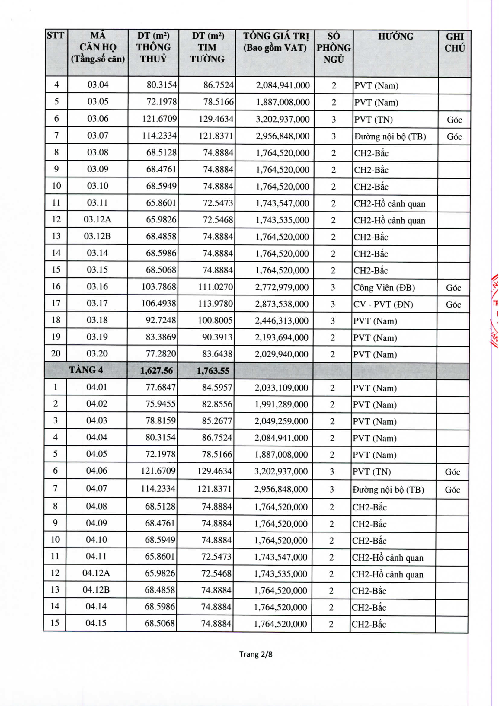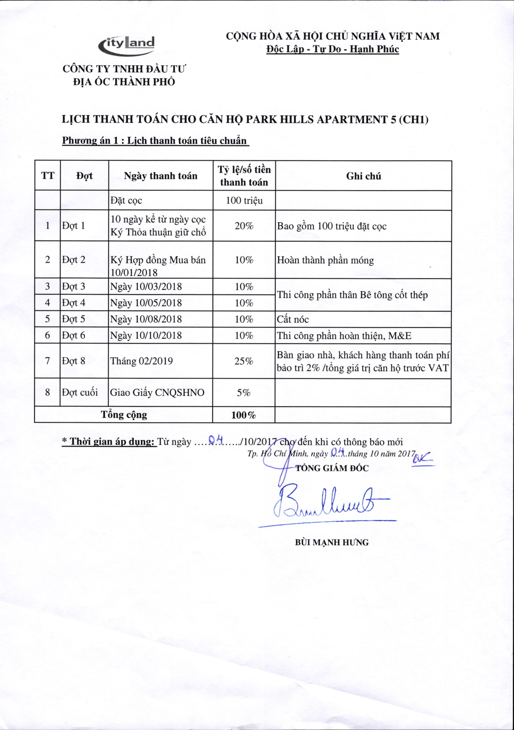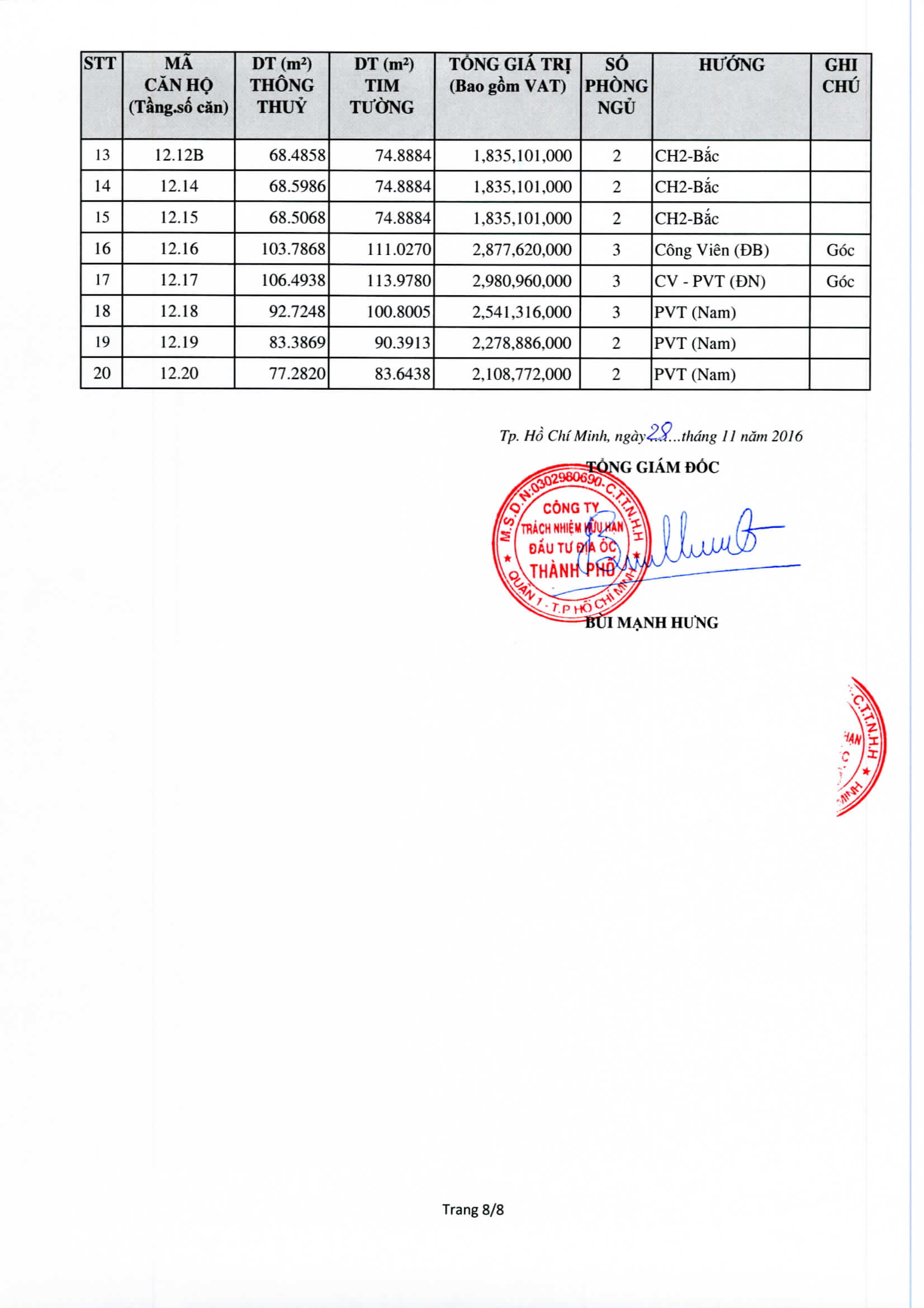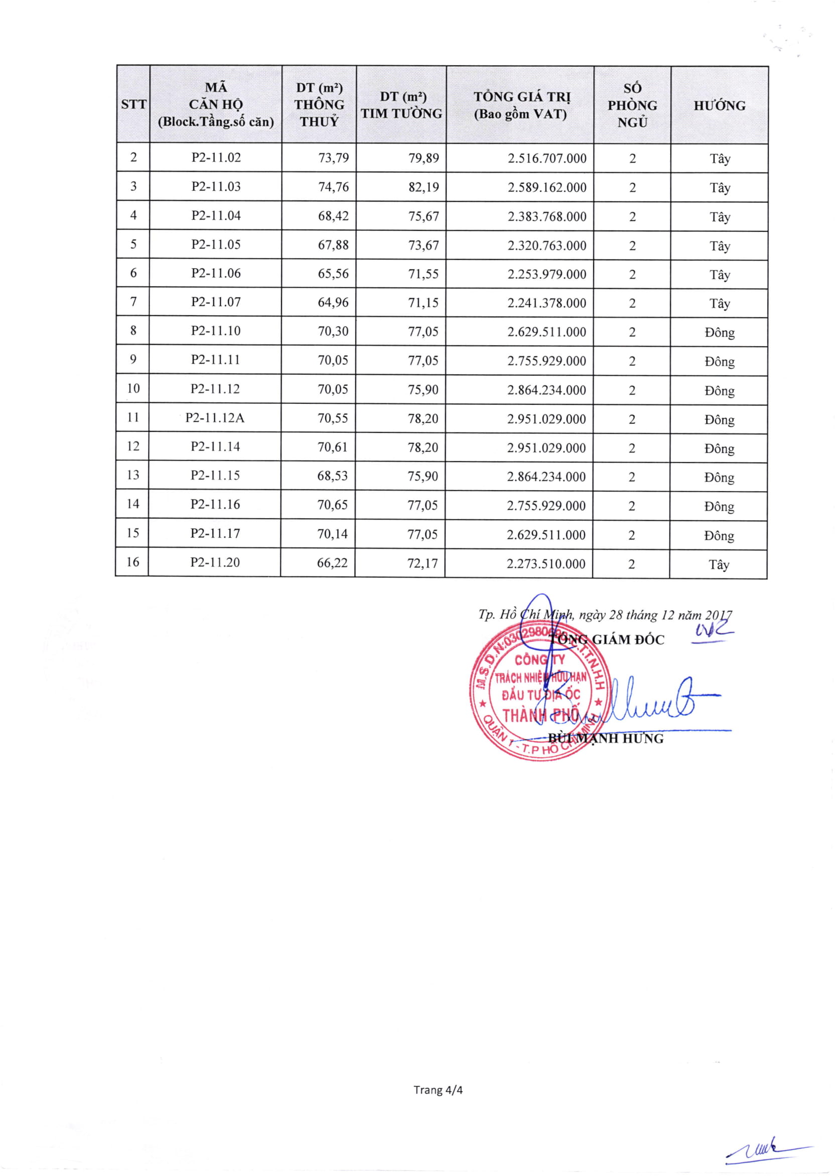 Ngày 27/12/2017 Cityland công bố mở bán block CH2a với bảng giá và tiến độ thanh toán như sau: