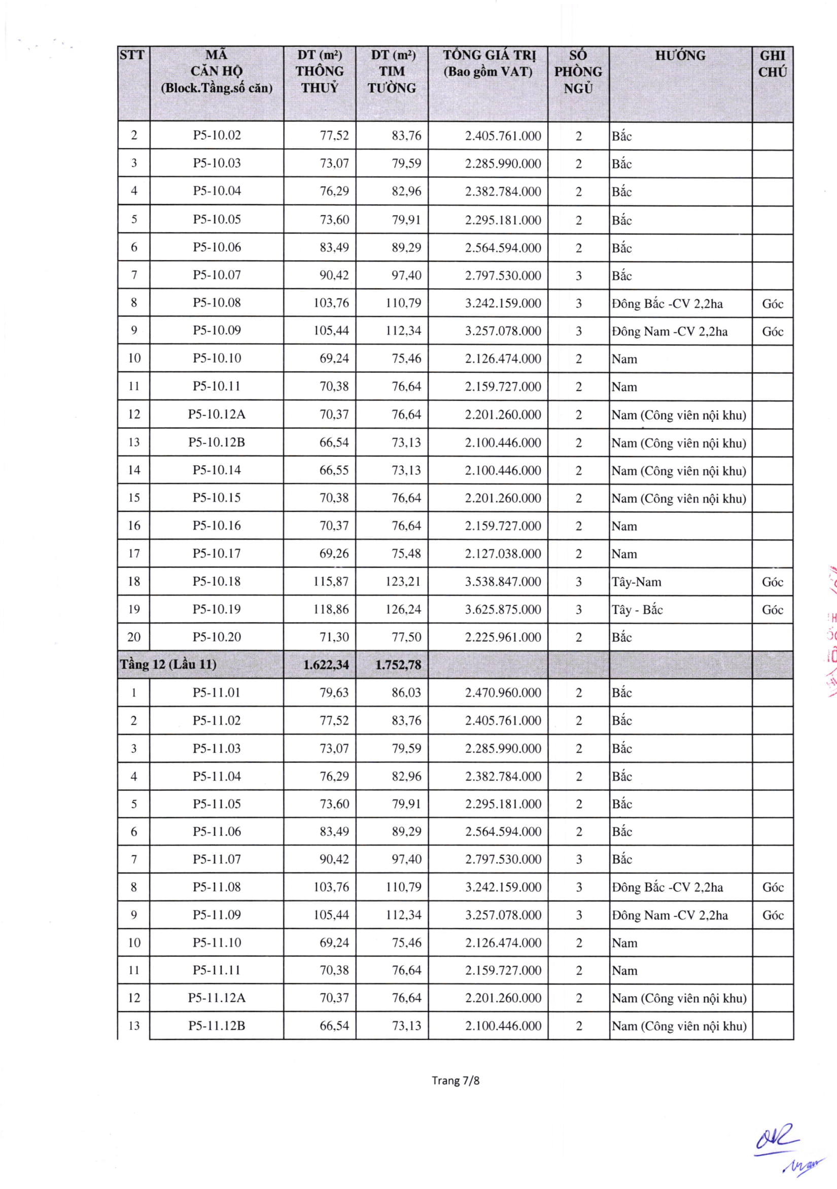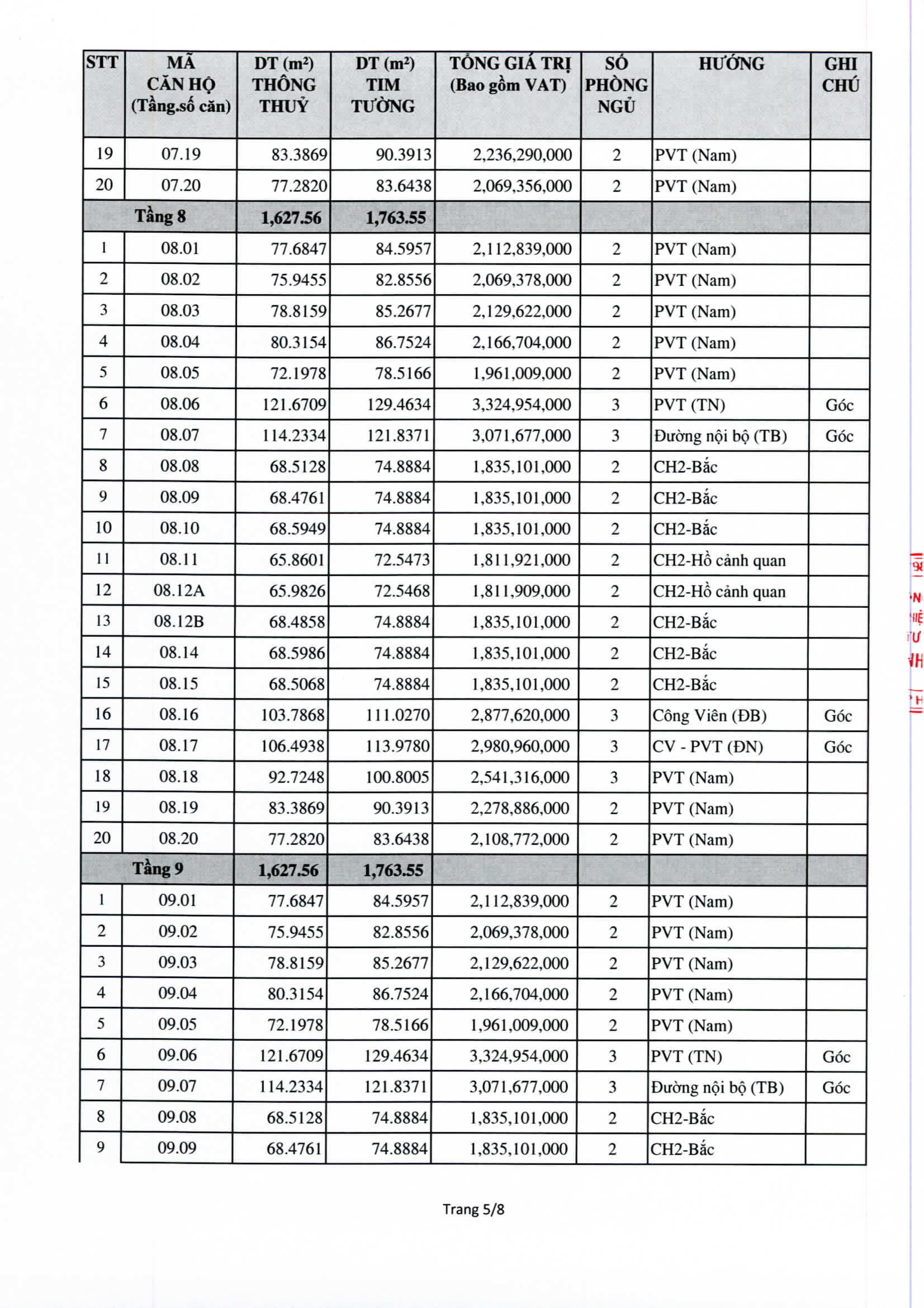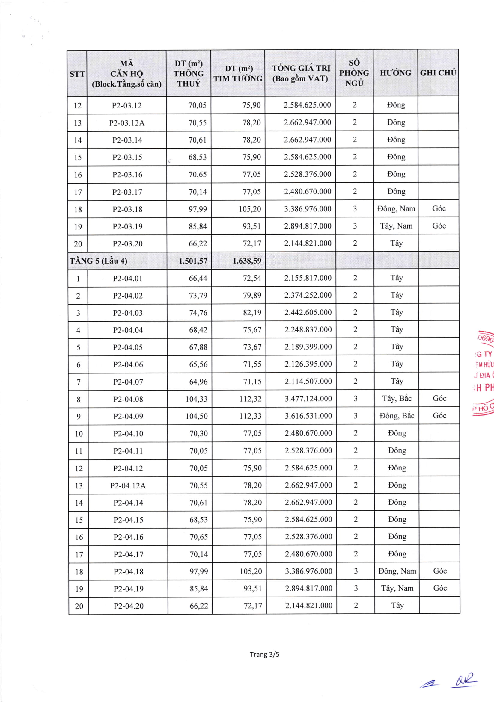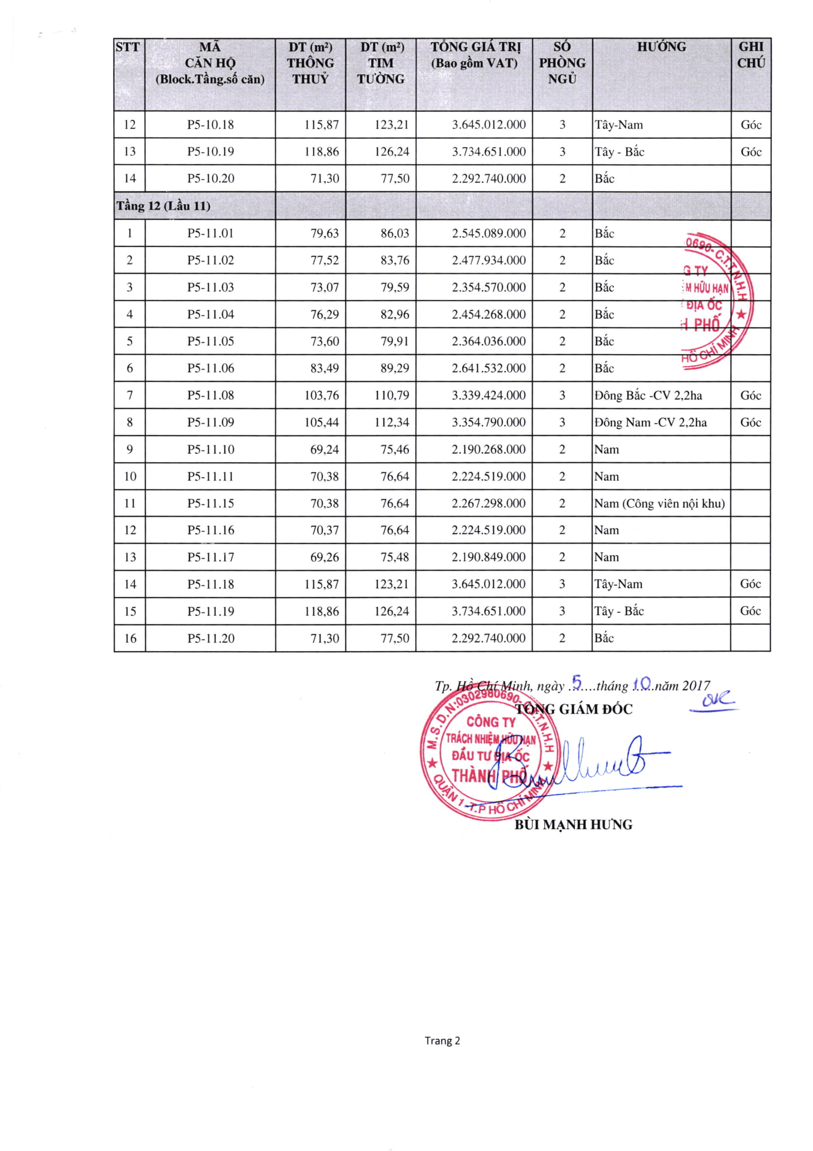 Ngày 04/10/2017 công bố Block P5 với giá và tiến độ thanh toán như sau: