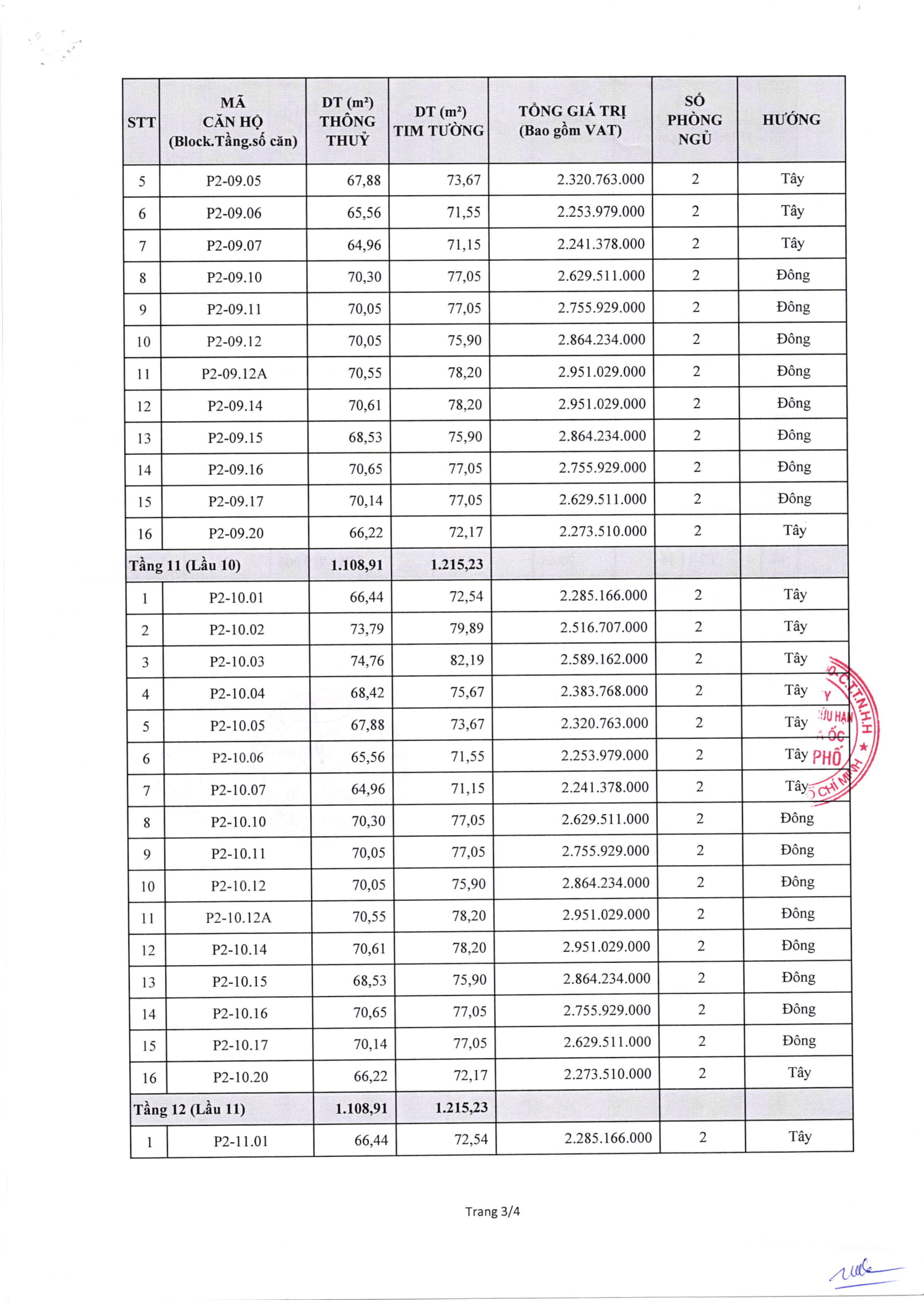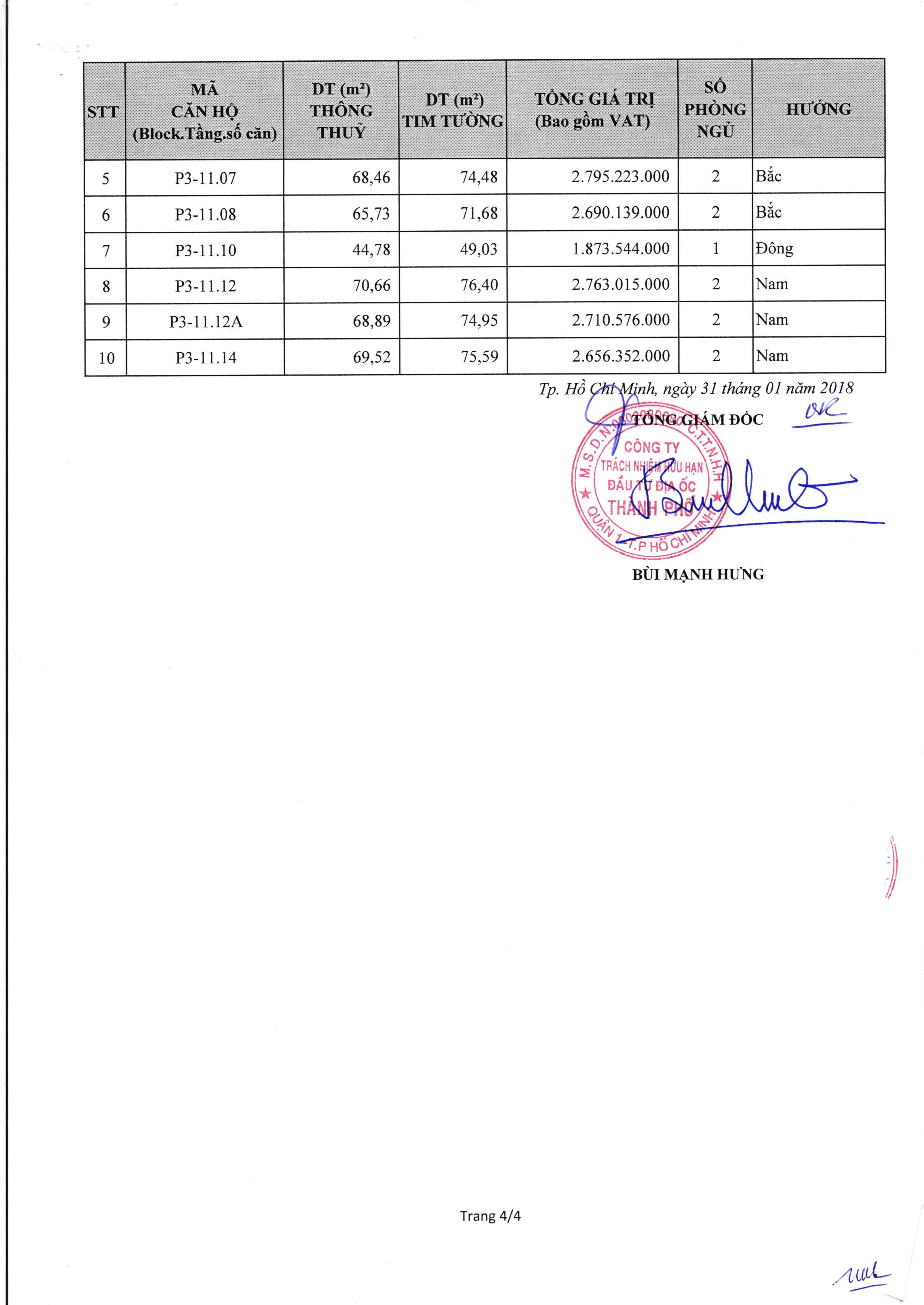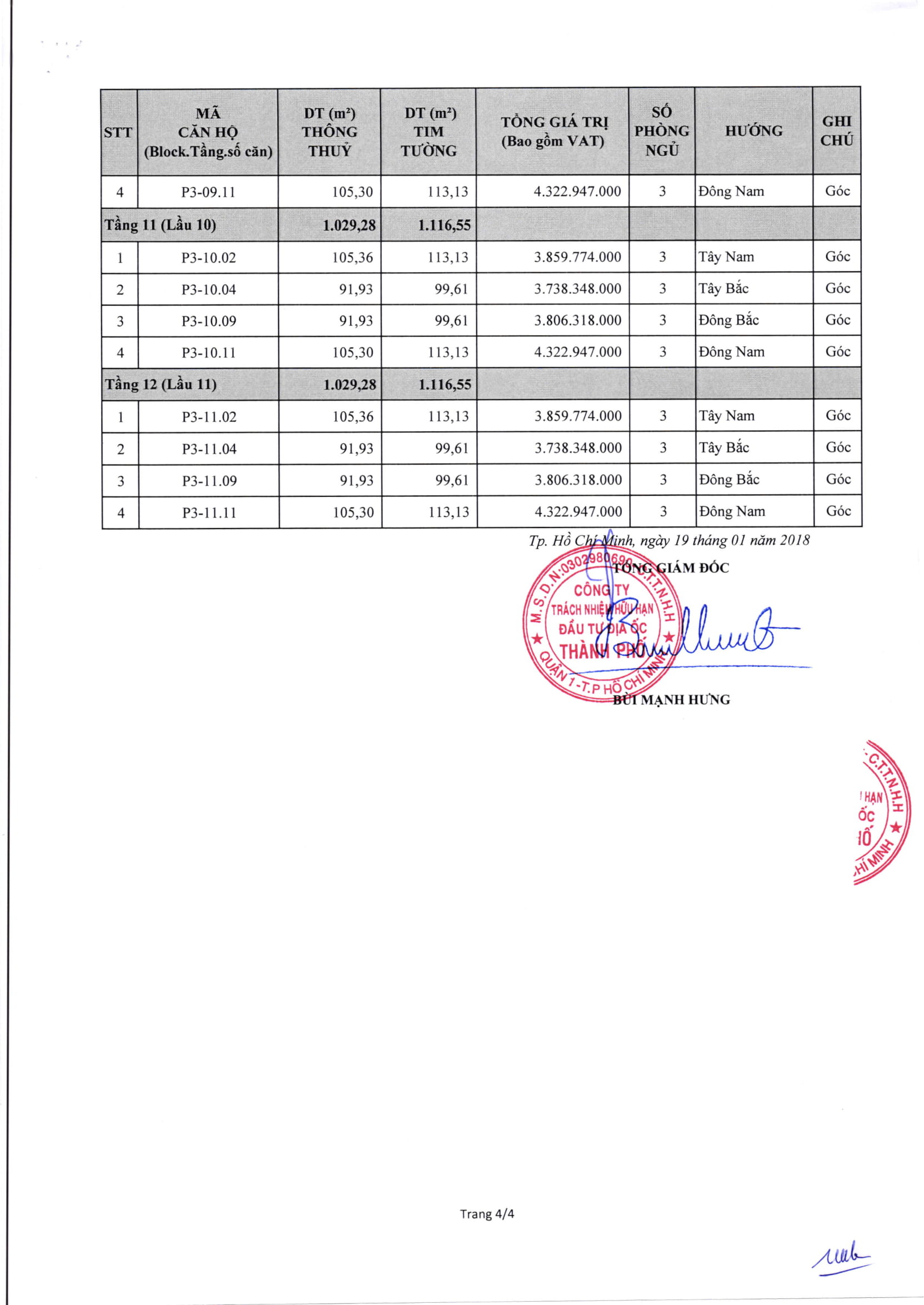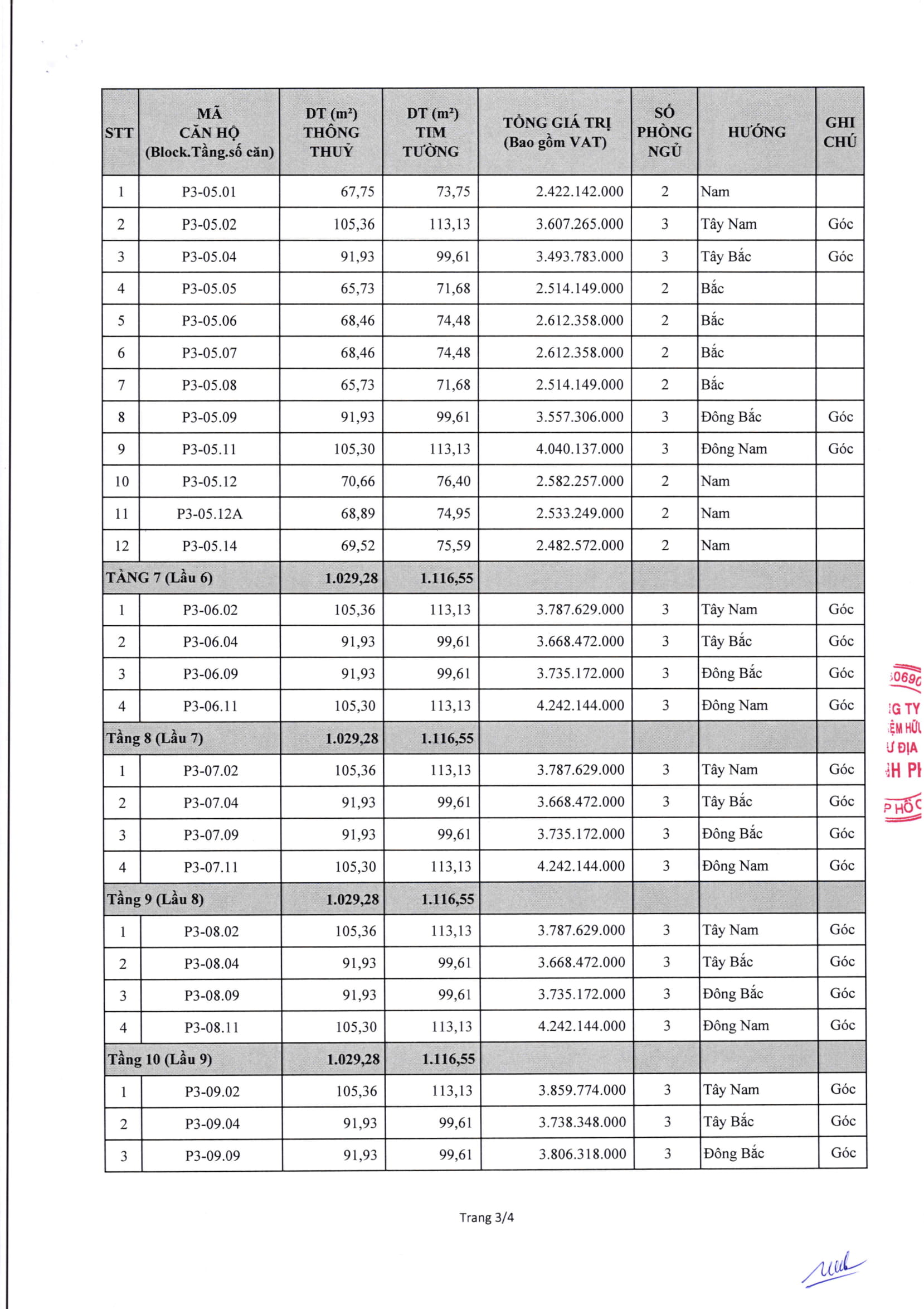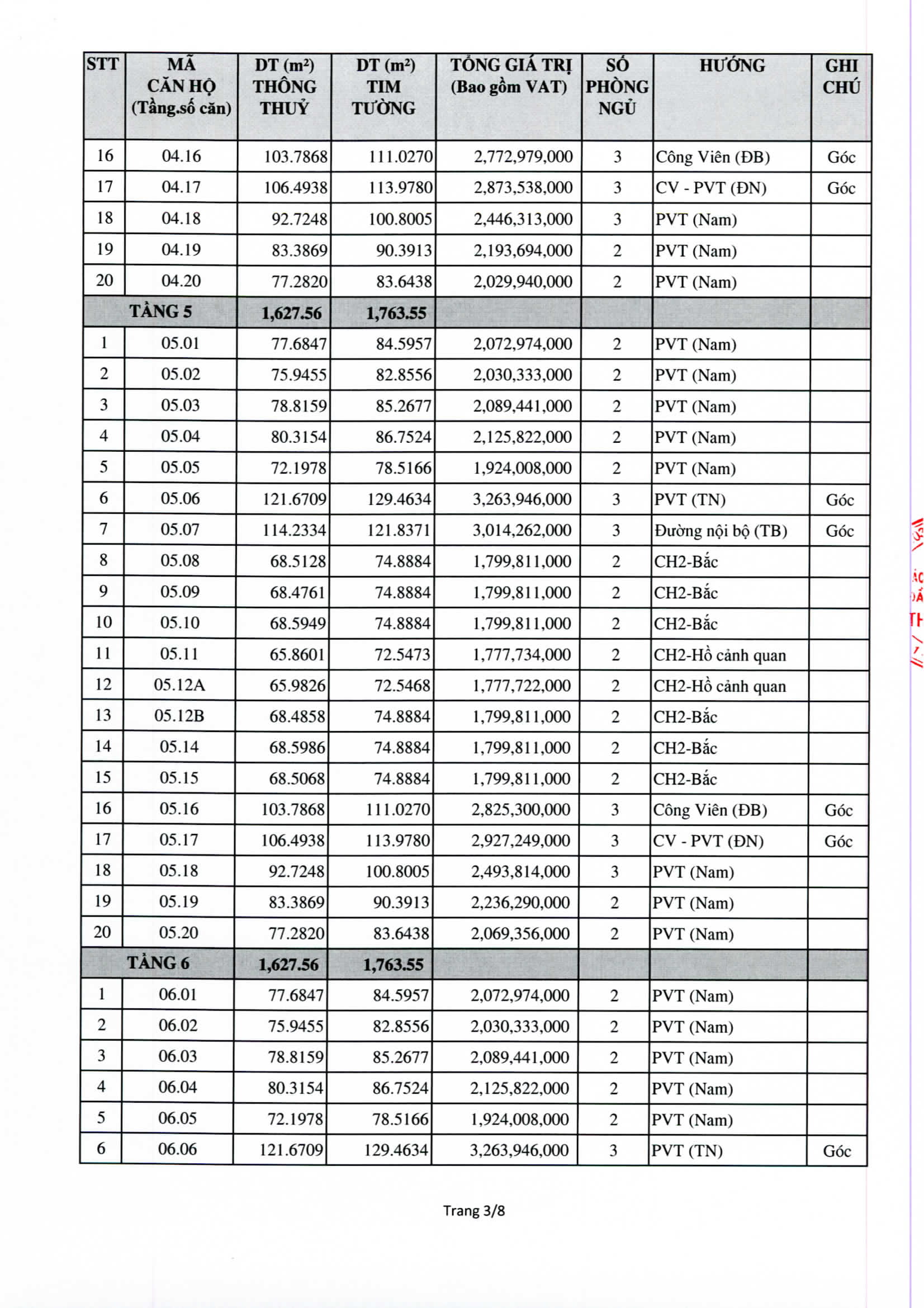 Ngày 04/10/2017 công bố Block P5 với giá và tiến độ thanh toán như sau: