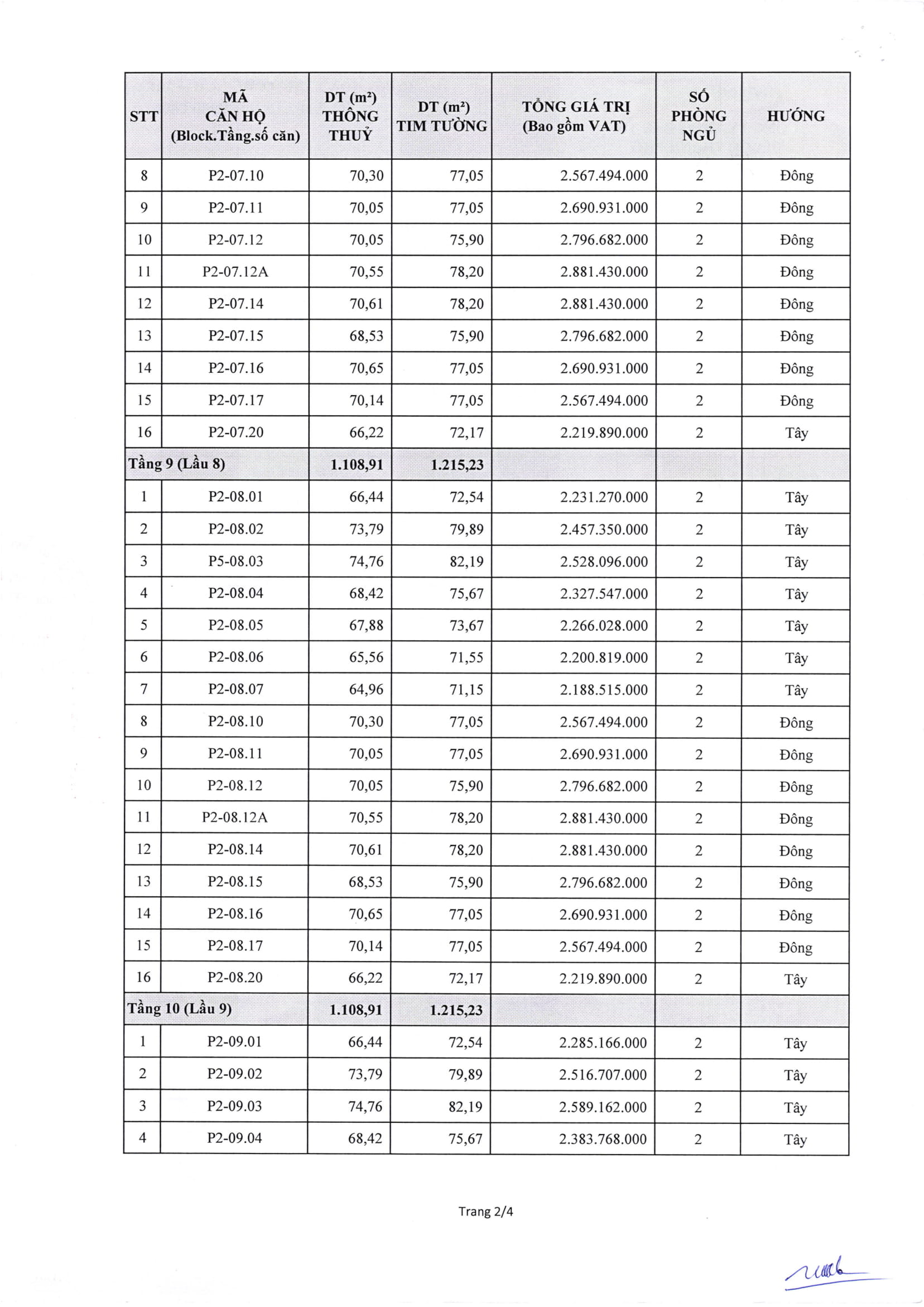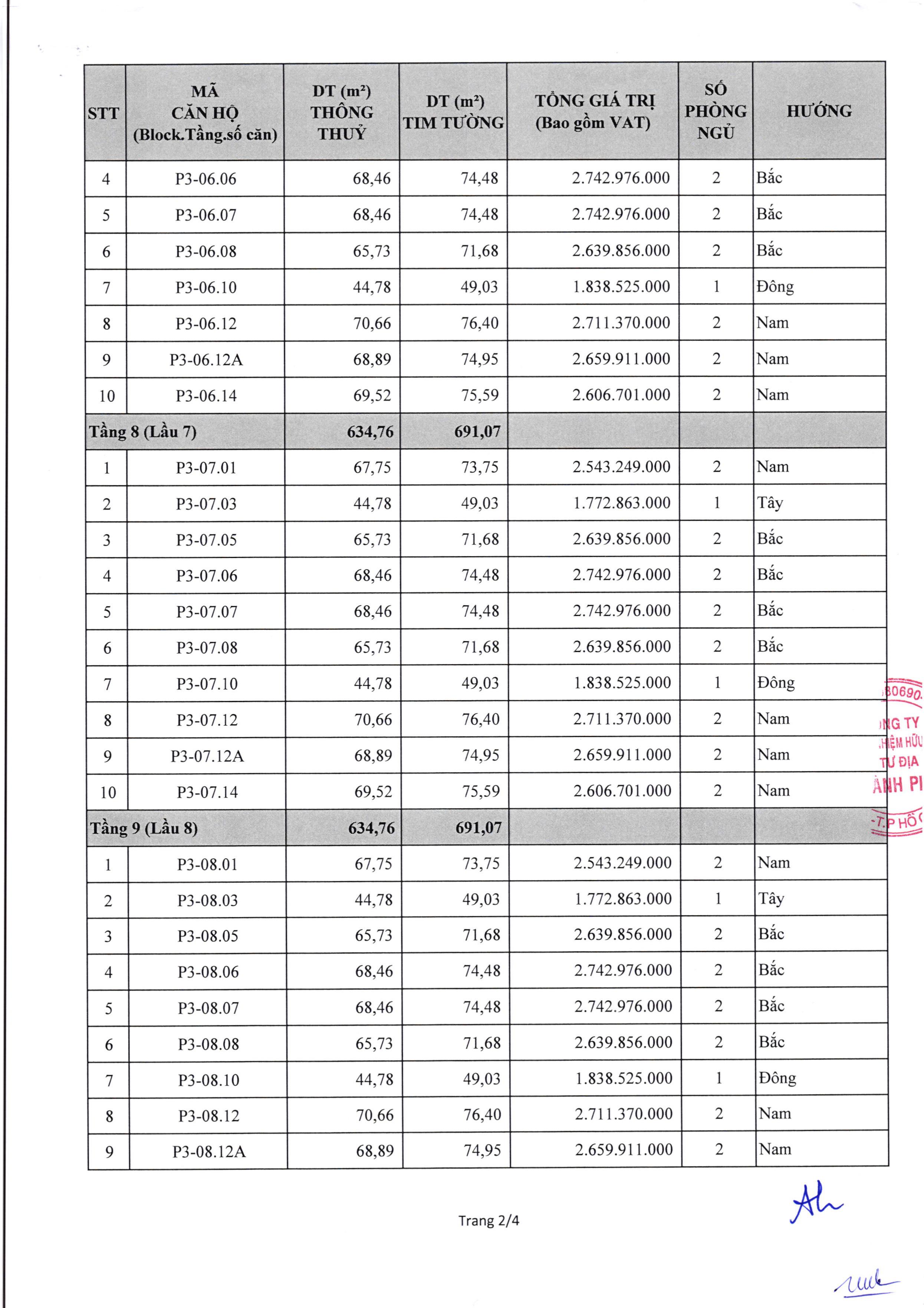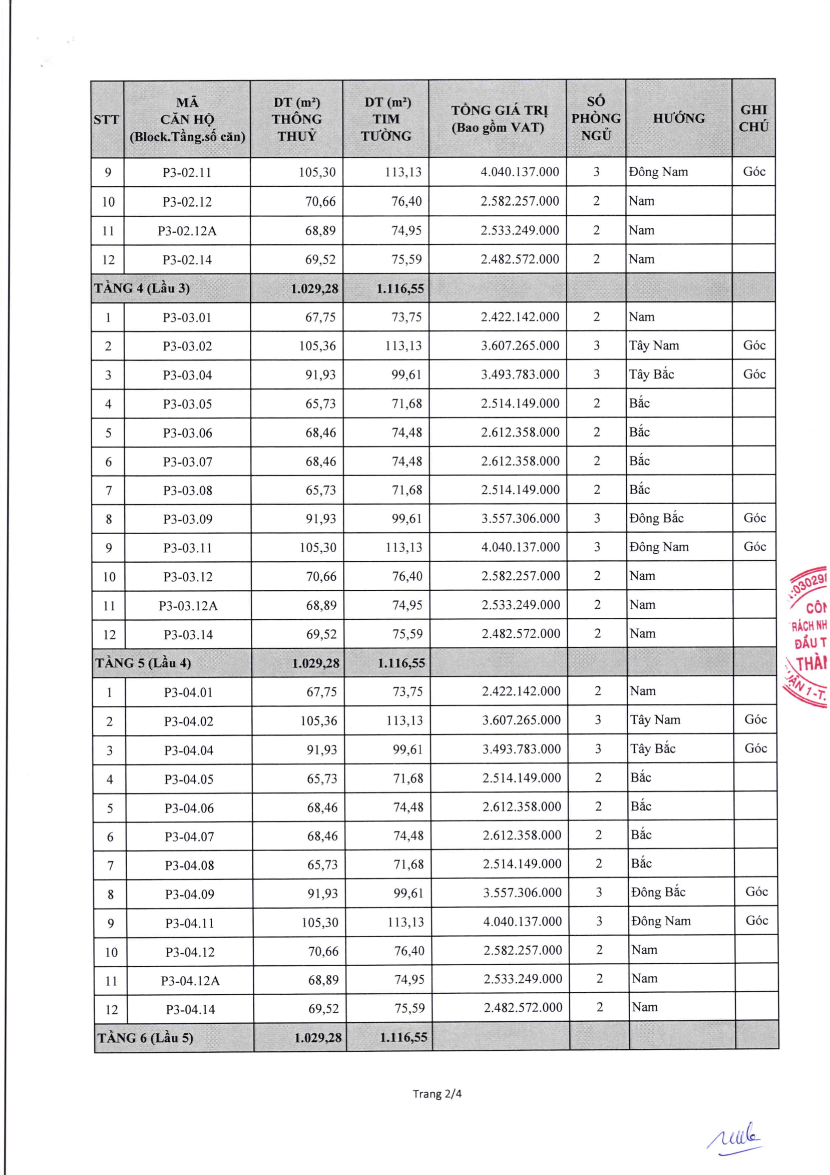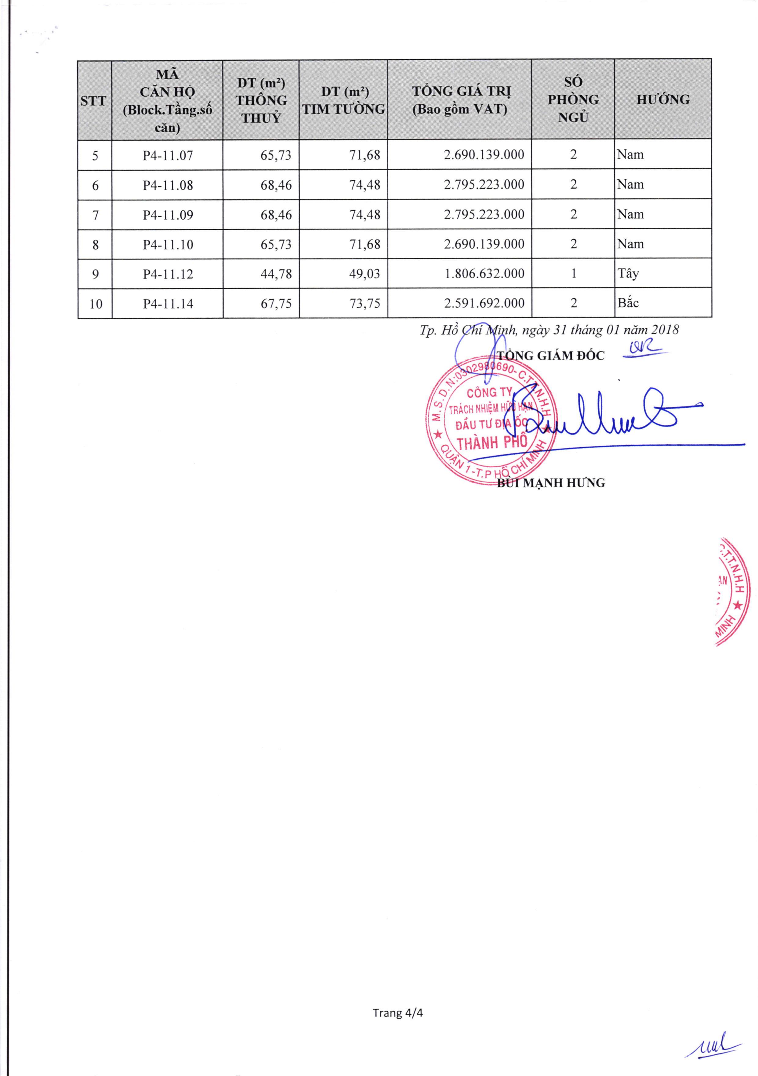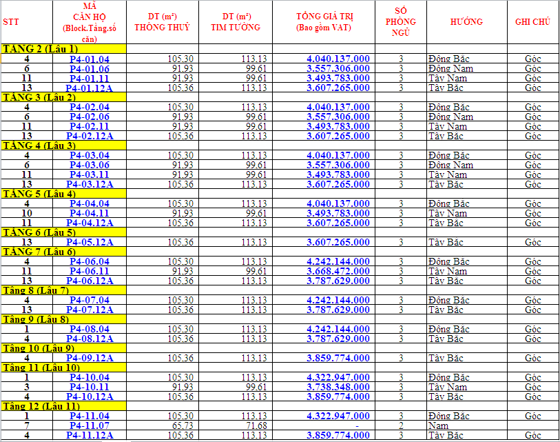 Ngày 04/10/2017 công bố Block P5 với giá và tiến độ thanh toán như sau: