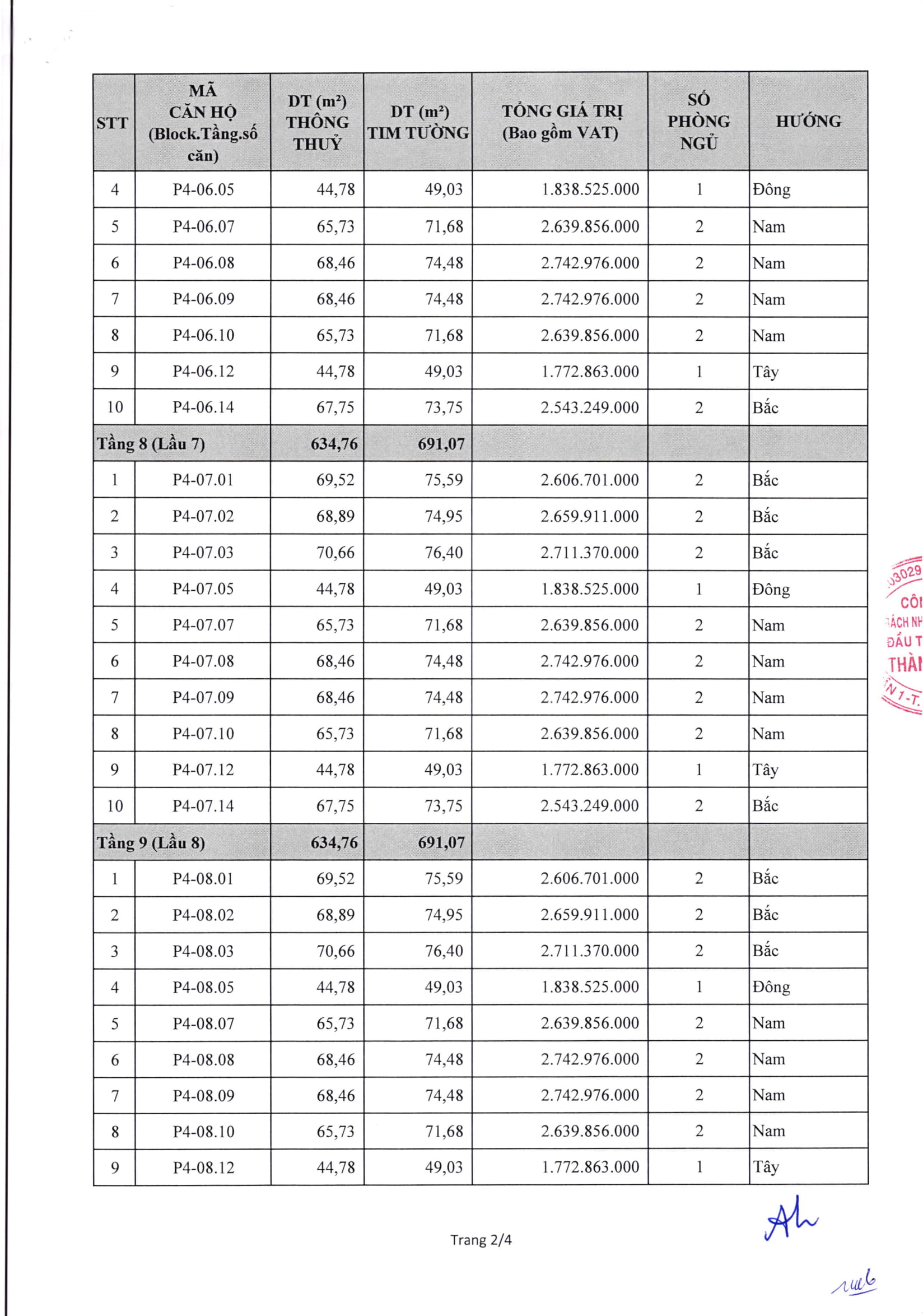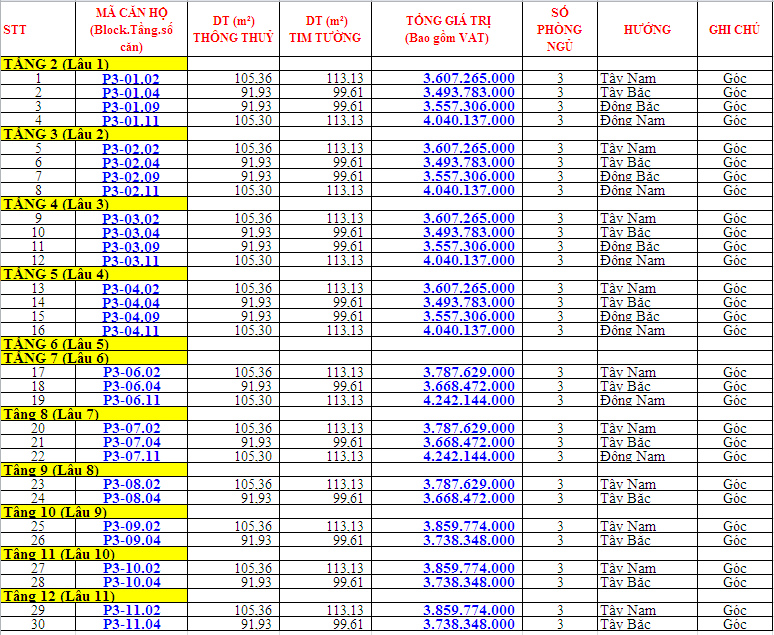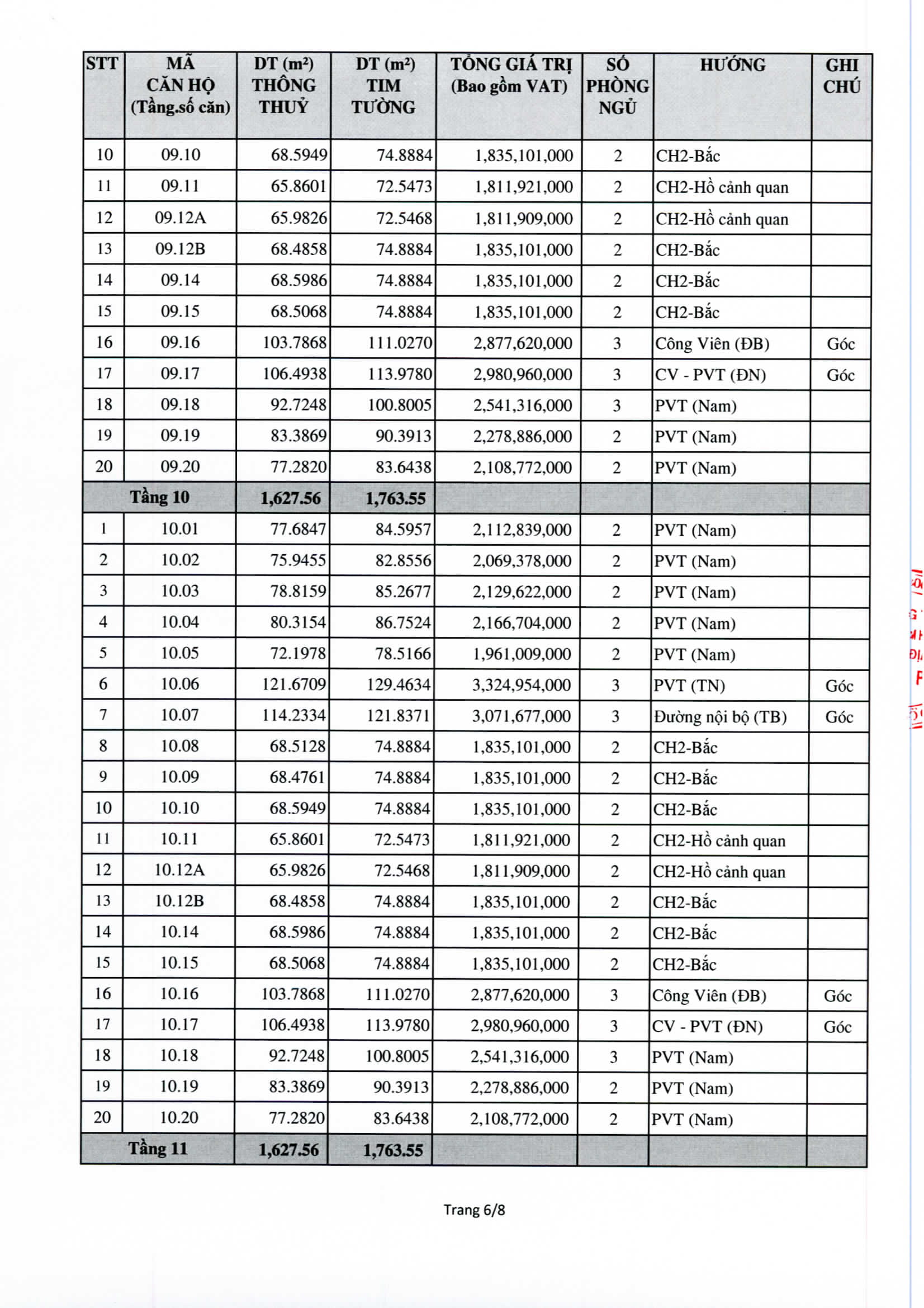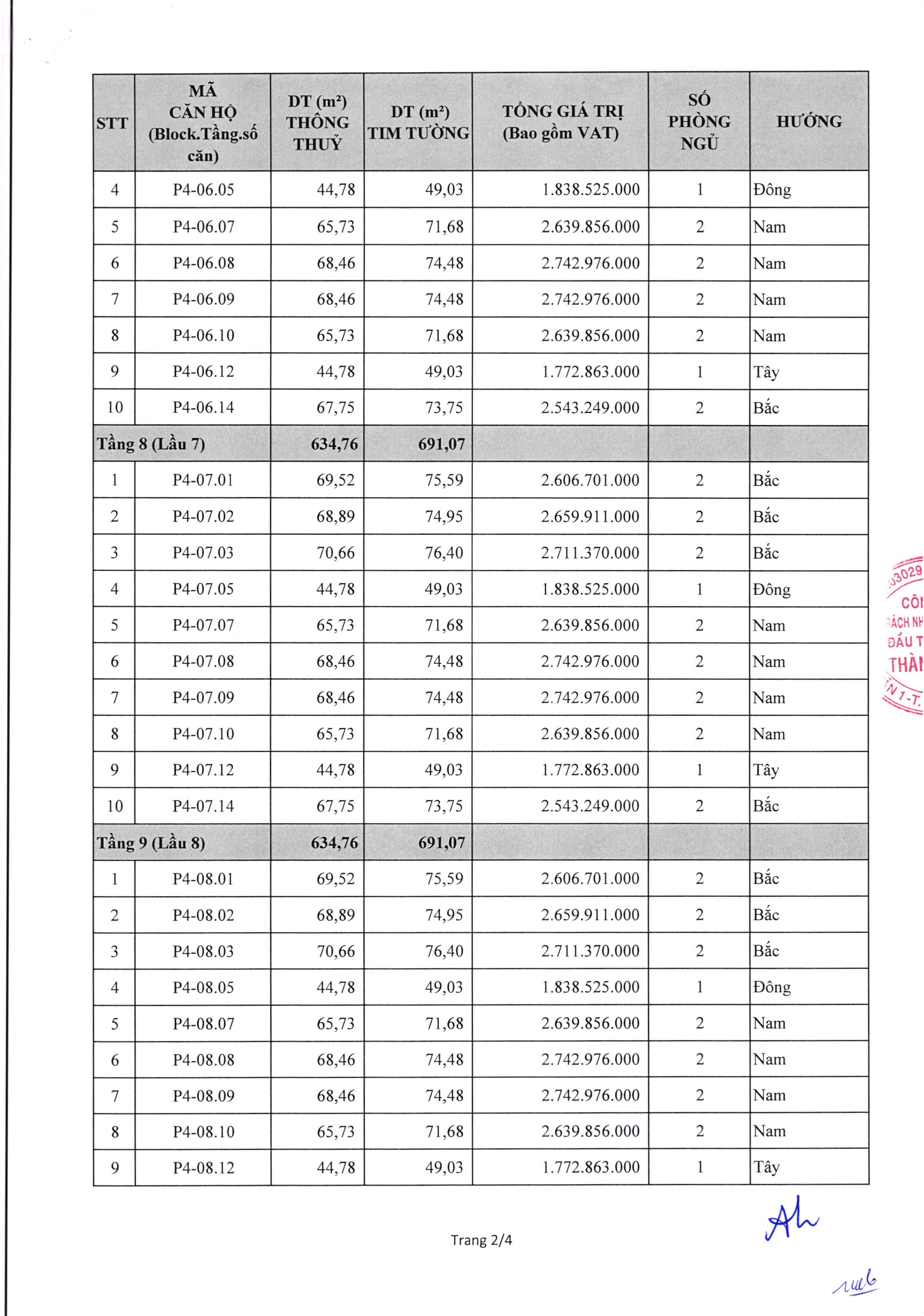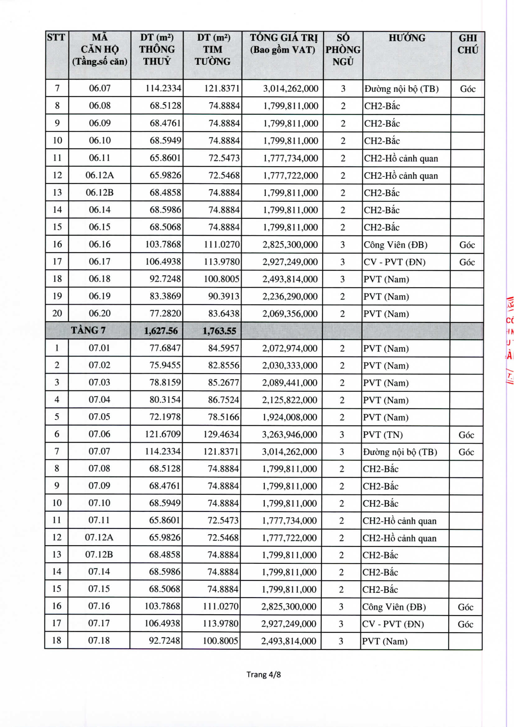 Ngày 04/10/2017 công bố Block P5 với giá và tiến độ thanh toán như sau: