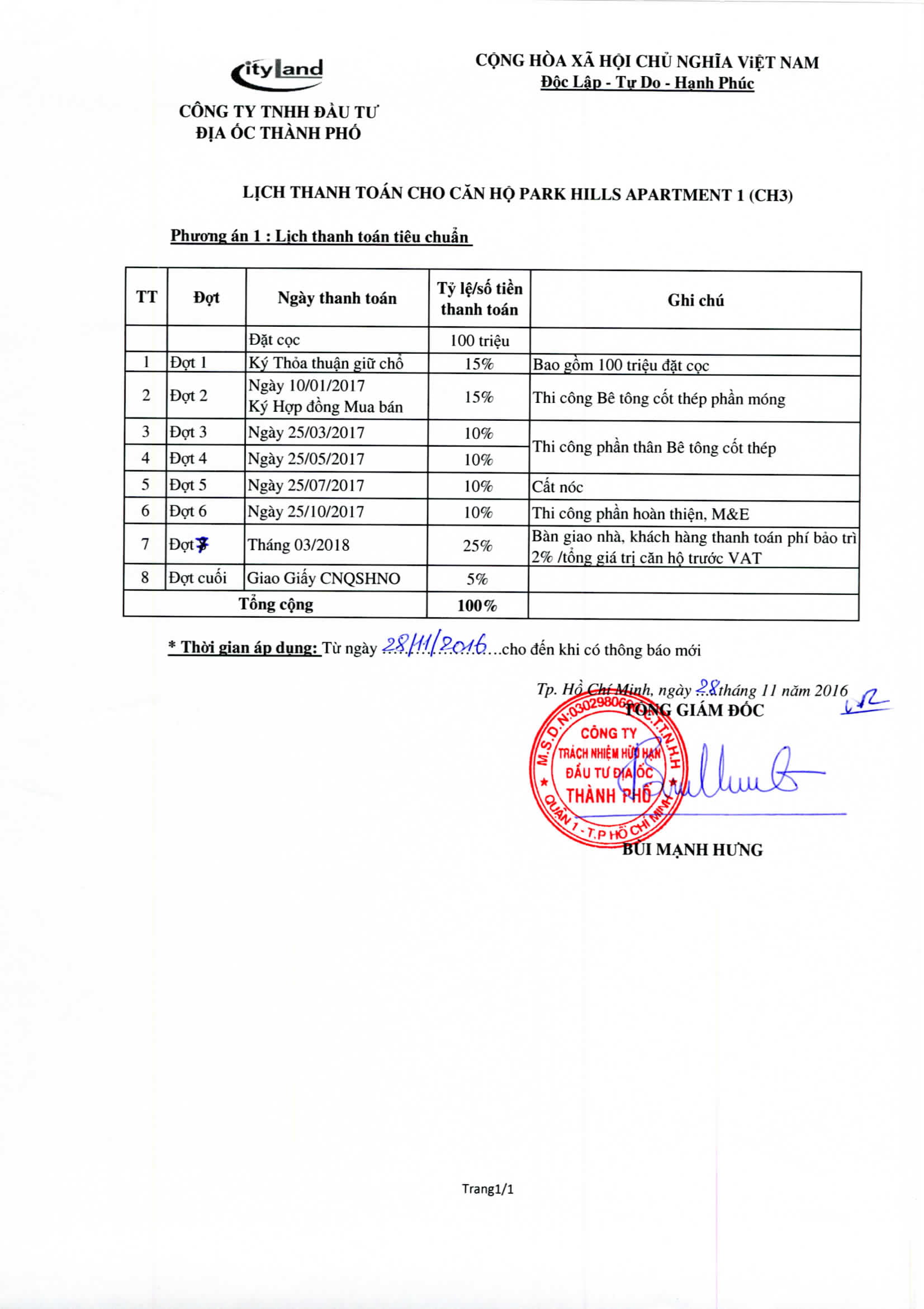 Ngày 03/12/2016 công bố chính thức dự án căn hộ Cityland Park Hills :